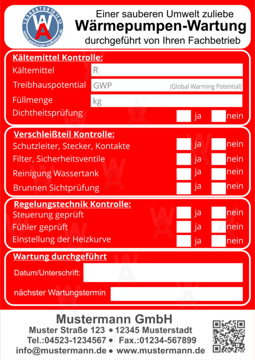 Wartungs-Aufkleber für Wärmepumpen-Wartung