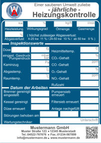 Ein durchschnittlicher Wartungsvertrag beträgt laut Statistik eine Vertragstreue zum Fachbetrieb von ca. 15 Jahren. Deshalb ist eine gute Dokumentation der Messwerte eine wertvolle Hilfe für den Heizungsmonteur oder die Servicekraft. Mit unseren Aufklebern hat der Heizungsmonteur alle wichtigen Messwerte sofort im Blick.