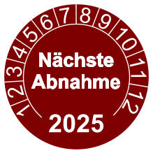 1 2 3 4 5 6 7 8 9 10 11 12  2020 2021 2022 2023 2024 2025 Nächste Abnahme 1 2 3 4 5 6 7 8 9 10 11 12  2020 2021 2022 2023 2024 2025 Nächste Inspektion