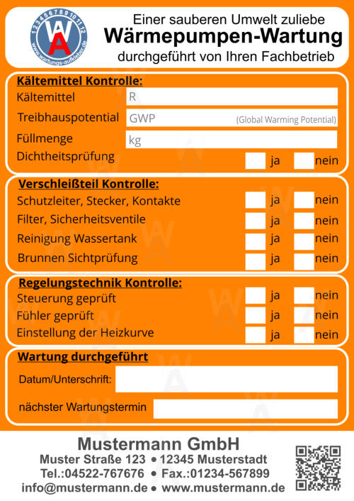 Wartungs-Aufkleber für Wärmepumpen-Wartung